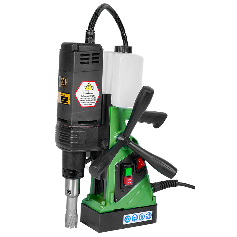 Model | Drilling dia. on steel plate | Max. drilling depth | Power | Stroke | Voltage | Mag. force | Speed | Mode | Weight |