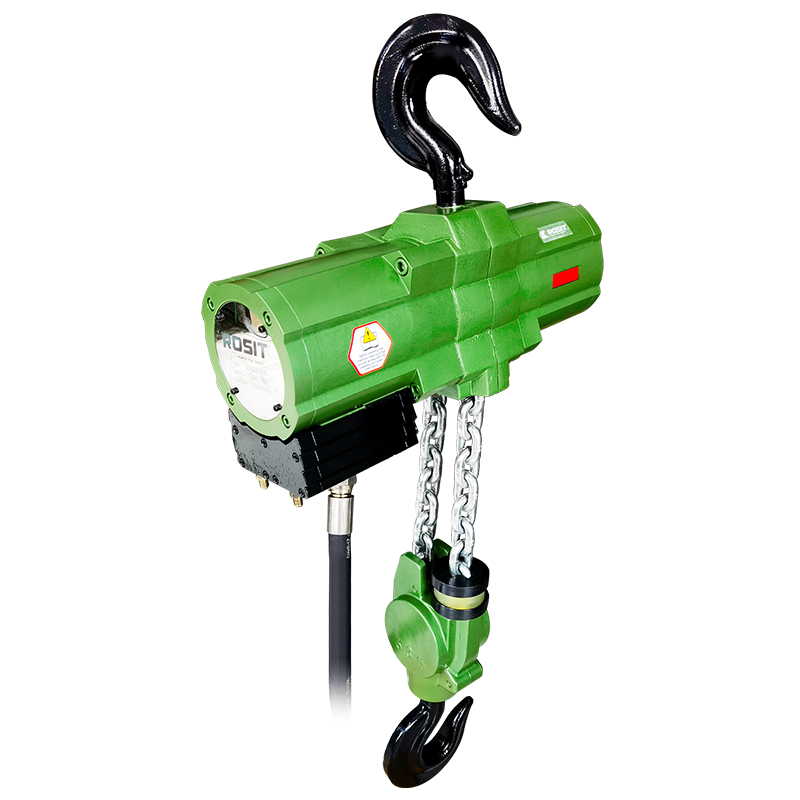 Model | Working pressure | Working load | Max. load | Chain fall(s) | Power | Lifting height | Full load lifting speed | No load lifting speed | Full load lowering speed | Full load air Cons.-lifting | Full load air Cons.-lowering | Std. weight Height of 3m | Romote control length | Air inlet | Hose inlet (ID) |